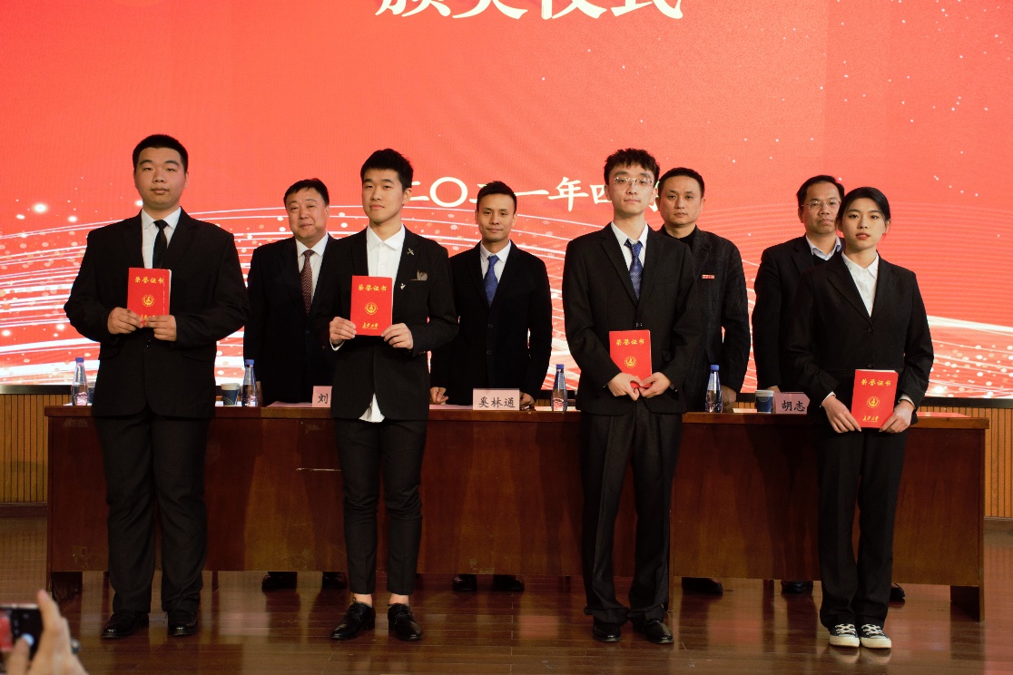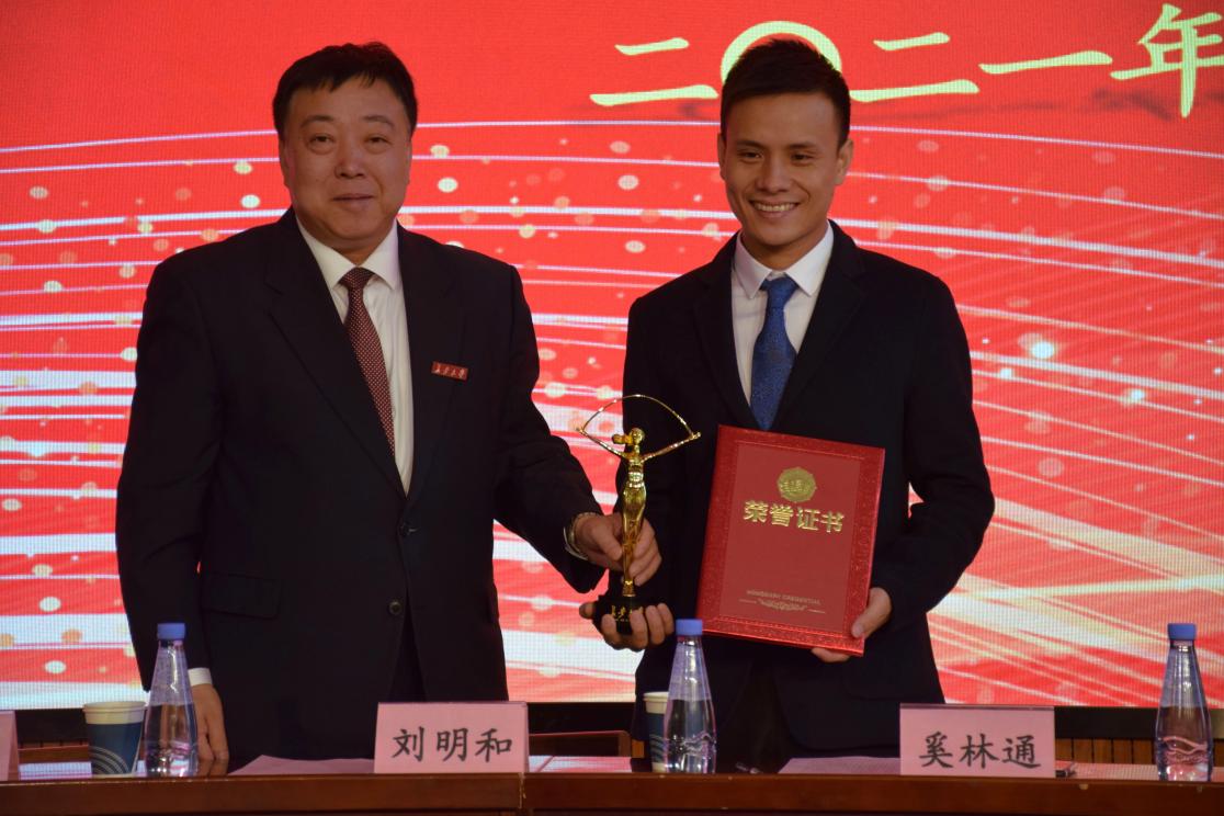 欧阳韬宣读2021年“第一届欧美AV 路蓝奖学金”获奖学生名单。与会领导嘉宾为获奖学生颁发荣誉证书。刘明和为奚林通颁发捐赠证书。