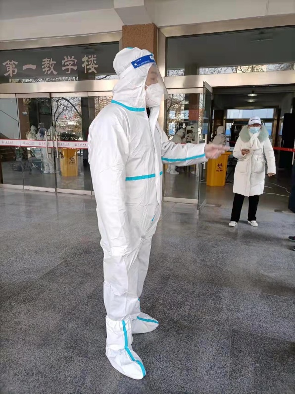 晁老师秉承着“能做尽做,应做全做”的原则,积极参与了西院住宅区小区巡查工作,向小区人员宣传防疫政策,对小区内流动人员进行劝诫,协助物业和学校维持了小区的秩序,在核酸检测人手不够时,临时培训上岗,协助信息录入,维护队伍秩序,组织学生进行核酸检测。晁老师即将退休,腰椎间盘突出、静脉曲张也时常复发,而且家里的孙女仅仅两岁,面对病毒,他没有退缩,始终坚持在一线工作。在巡逻时经常冻得耳鼻通红,身体也曾偶发不适,但是他毫无怨言,他认为:“只有大家团结一致,我们就一定能渡过难关,这场疫情防控战一定会取得最终胜利。”