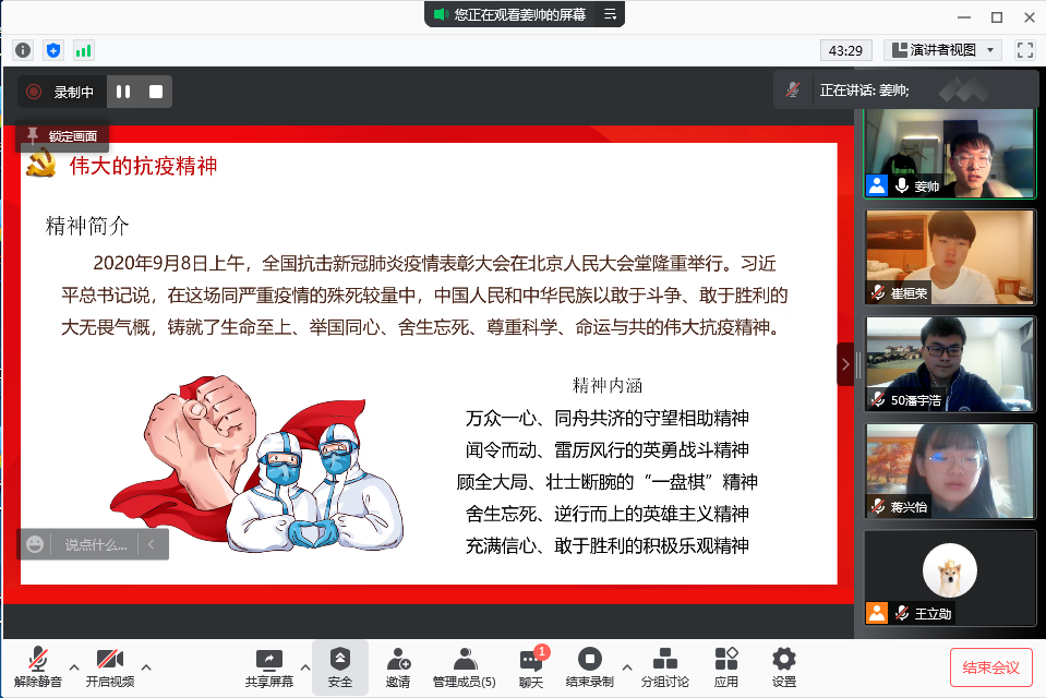 会上,临时党支部书记姜帅结合当前西安疫情形势,以伟大抗疫精神为主题,带领党支部成员对伟大抗疫精神进行学习和总结,鼓励党支部成员发挥先锋模范作用,为早日打赢防疫抗疫攻坚战做出积极贡献。