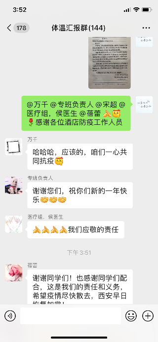 随后,临时党支部全体党员结合习近平主席新年贺词和伟大抗疫精神分享了自己的学习感受,大家纷纷表达了对党和国家、对全体抗疫人员的感激之情,表示解除隔离后要积极投身抗疫一线,贡献自己的一份力量。