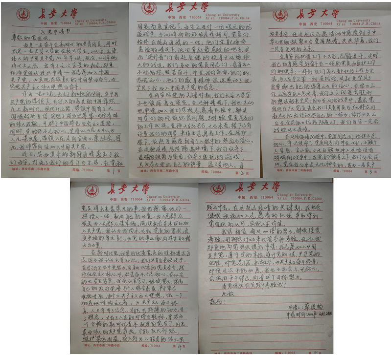 “在抗疫一线做志愿者时,我才明白了责任与担当的真正含义,看到身边的党员冲锋在第一线,用实际行动践行着党旗下的誓言,更加坚定了我要入党的决心。”学研会成员杨金波在志愿书中写道。自提笔那一刻起,这些“00后”的青年就已经把自己视为一名共产党员,事事在前、争作表率,成为长大疫情防控阻击战上的先锋队,用自己的实际行动诠释了入党申请书上的铮铮誓言。他们在抗“疫”中淬火成钢,用实实在在的行动,书写着青年一代的责任与担当。
