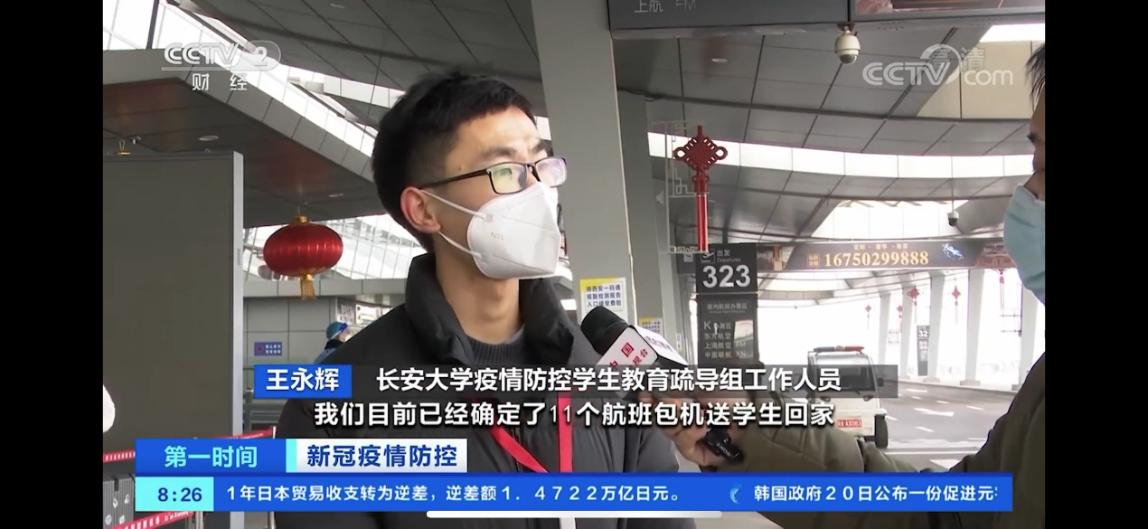 1月17日起,欧美AV积极响应陕西省“出得了门、上得了路、到得了家”的学生寒假离校返乡工作精神,严格按照学校相关工作安排,点对点护送学生安全返乡,央视等多家主流媒体聚焦我校学生离校返乡,欧美AV辅导员王永辉接受央视采访,介绍了学校在疫情防控形势下,确保学生顺利离校返家所采取的帮扶、防控措施,展现了学校对疫情防控工作的高度重视,体现了学校对学生的关爱关心。