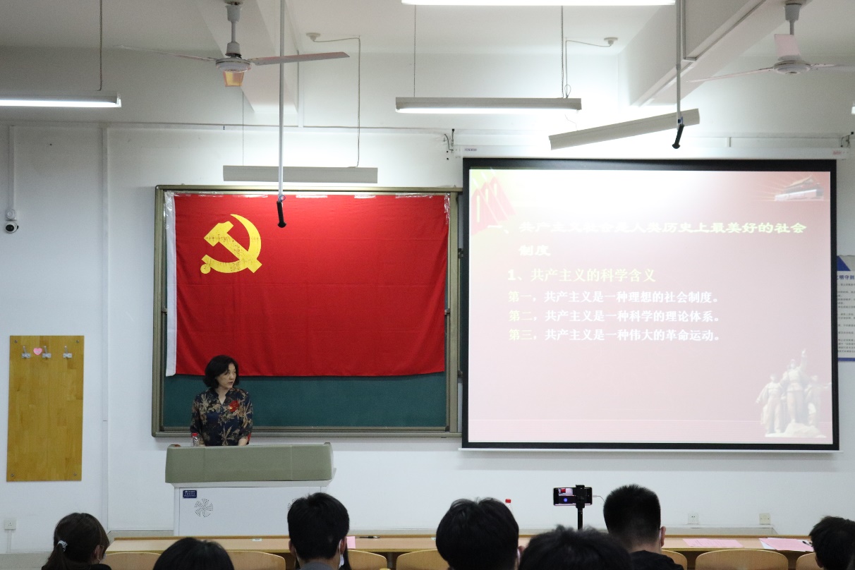 典礼结束之后,闫秀萍为学员讲授党课第一讲《党的最终目标和现阶段的任务》。