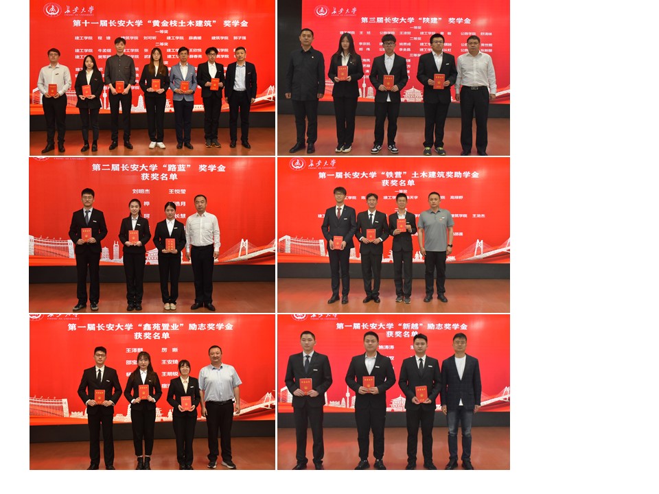 邱旭辉为企业代表陕西建工控股集团有限公司颁发捐赠证书,欧阳韬宣读获奖师生名单,与会领导嘉宾为获奖师生代表颁奖。