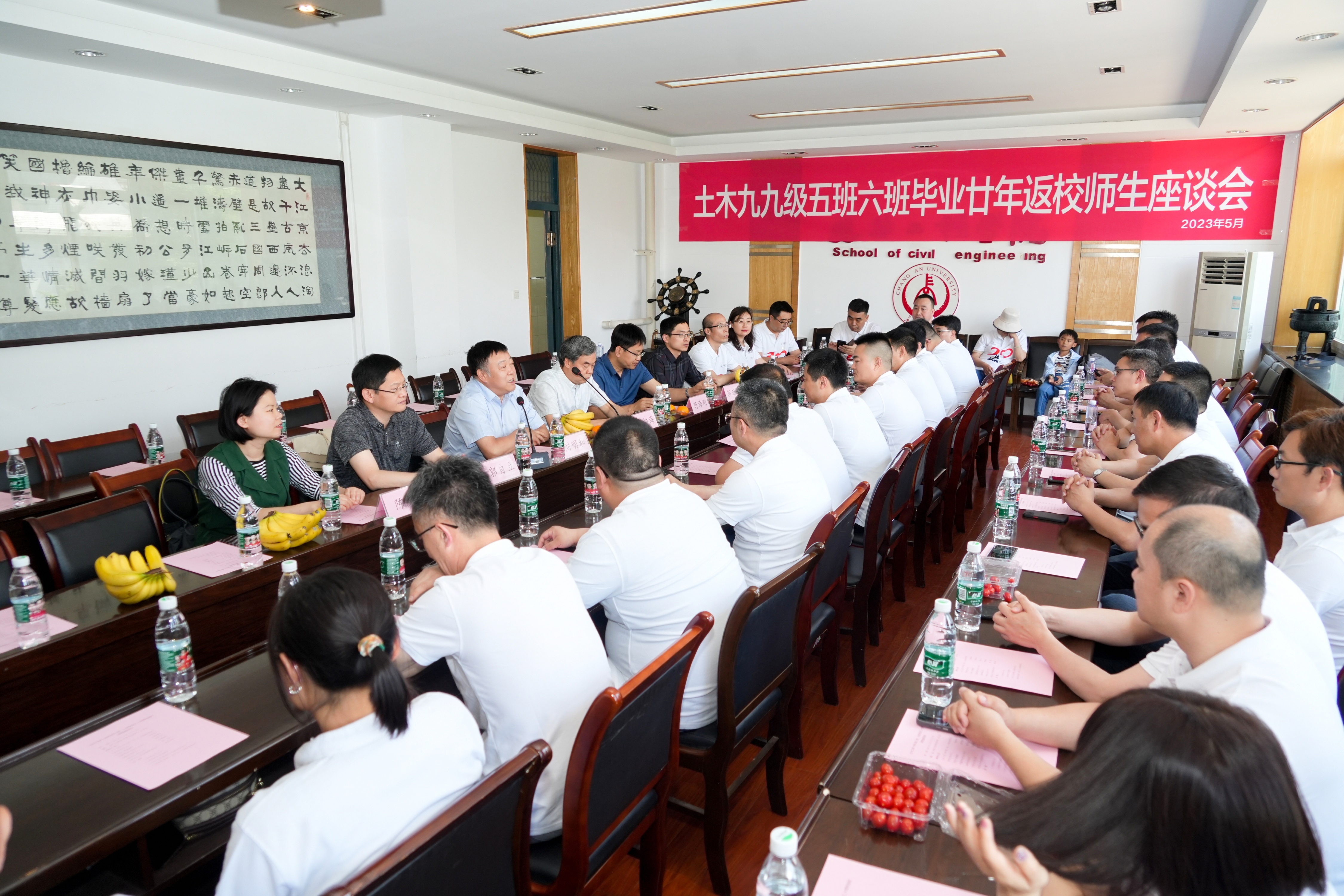 5月13日,土木工程专业1999级5班和6班30余名校友回到母校,追忆似水流年,共叙同窗情谊。当日下午,在南校区西院 欧美AV 第一会议室举办校友返校座谈会,欧美AV 党委书记刘明和,二级教授赵均海,1999级班主任郭自立(附属学校党总支书记)、苟海刚(基建处副处长),以及办公室管理人员参加座谈会。院办主任陈英主持座谈会。