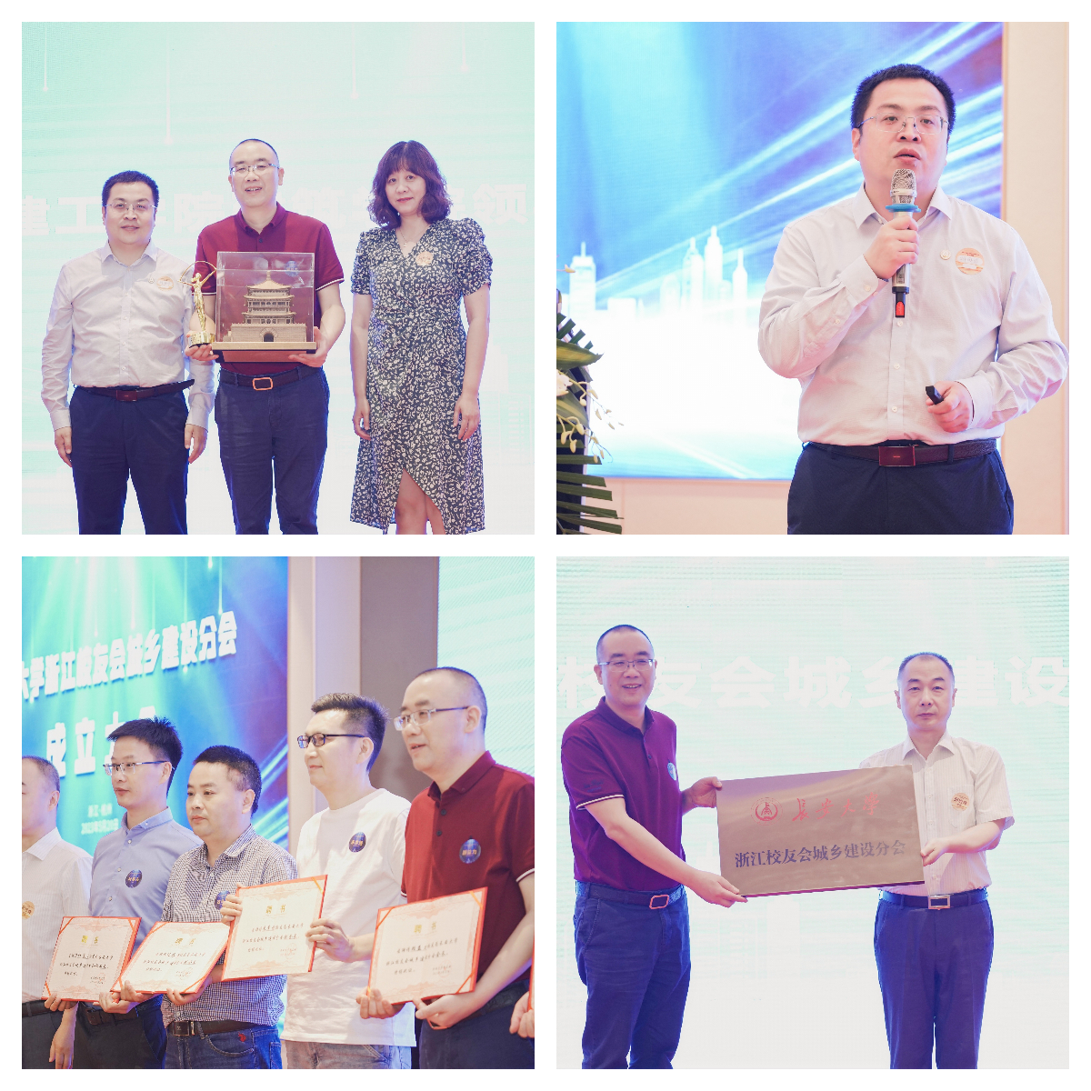 学校社会合作处副处长邱旭辉宣读《关于成立欧美AV 浙江校友会城乡建设分会》的批复,简要介绍了学校建设发展概况,并为欧美AV 浙江校友会城乡建设分会授牌。