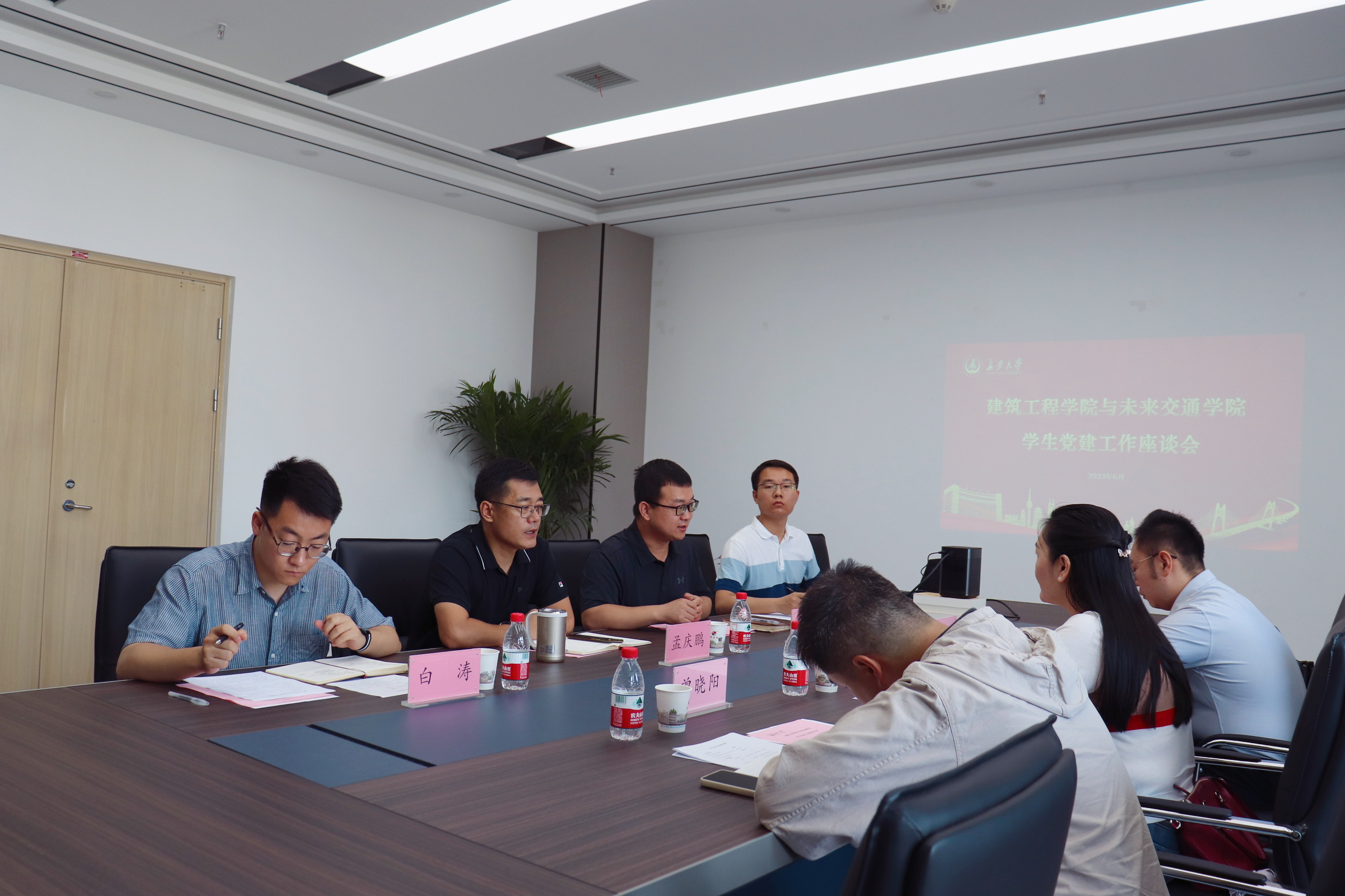 为深入开展学习贯彻习近平新时代中国特色社会主义思想主题教育,进一步加强基层党建工作交流,提升党建工作质量,6月21日上午,未来交通欧美AV 副院长汤颖颖、学生事务部副主任刘志兴、团委书记曾晓阳来欧美AV交流研讨学生党建工作。 欧美AV 党委副书记孟庆鹏、学办主任刘云博、辅导员白涛、李宏伟在北校区建工材料实验中心第二会议室与未来交通欧美AV 各位老师进行座谈交流。