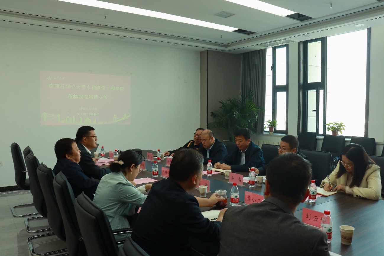 10月16日,石河子大学水利欧美AV 党委书记汤骅、党委副书记娄哲一行5人来院交流,院党委书记刘明和、党委副书记孟庆鹏及相关科级干部参加交流。