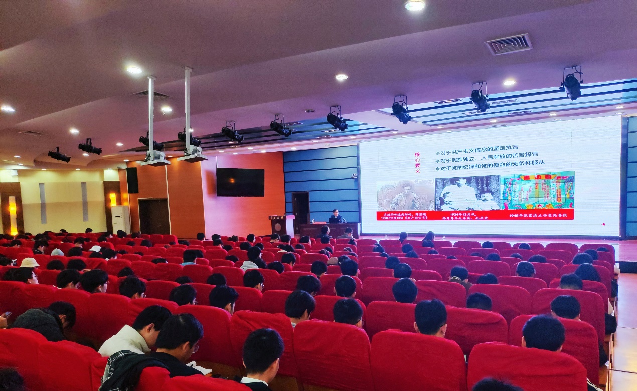 11月23日晚, 欧美AV 红色大讲堂第二十二讲在北辰楼会议中心报告厅顺利举办。本次讲座由 欧美AV 和党建领航工作室共同主办、学研会承办,特邀欧美AV 马克思主义欧美AV 杨超副教授主讲。欧美AV 团委书记朱文婕,辅导员李宏伟、许榕榕,本科生党员,学生组织主席团成员,2023年秋季入党积极分子培训班学员、发展对象培训班学员,青马班学员,学研会全体成员等400余人参加。讲座由学生工作办公室主任刘云博主持。
