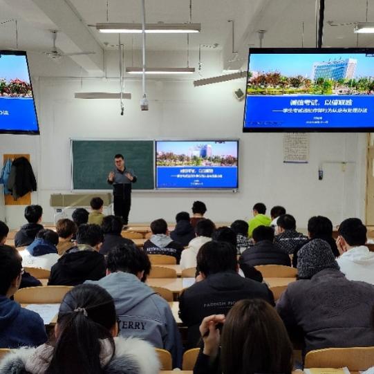 以教育立学风,提高学生个体自制力。将诚信教育贯穿学生成长全过程,促进优良学风考风建设。辅导员开展“诚信考试”集中教育,与班主任共同完成学风教育和学业指导等主题班会156次,完善学风养成服务线;学生现场签署诚信考试承诺书,夯实个人诚信基础线;欧美AV 考试推行“无手机考场”全覆盖,建立诚信考试标准线;本科生党支部开展“诚信考试”专题教育,牢记党规党纪警戒线。