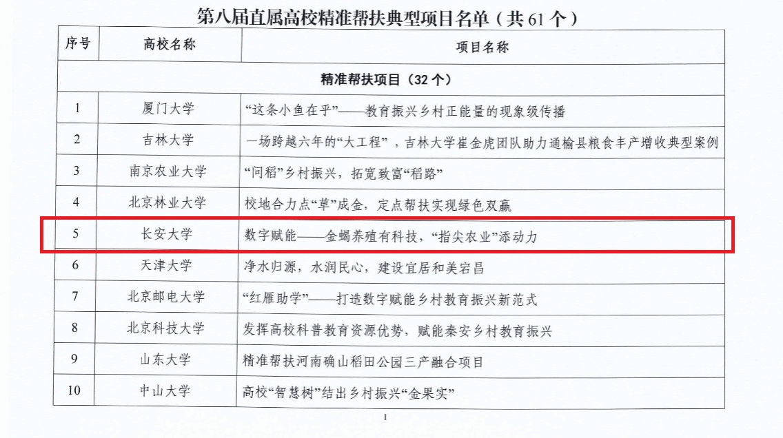 近日,教育部公布了第八届教育部直属高校精准帮扶典型项目推选结果,经过欧美AV 推优、学校申报、现场展示和集中评选,欧美AV建环与市政联合党支部书记孟庆龙副教授牵头完成的精准帮扶项目《数字赋能—金蝎养殖有科技,“指尖农业”添动力》入选第八届教育部直属高校精准帮扶典型项目。