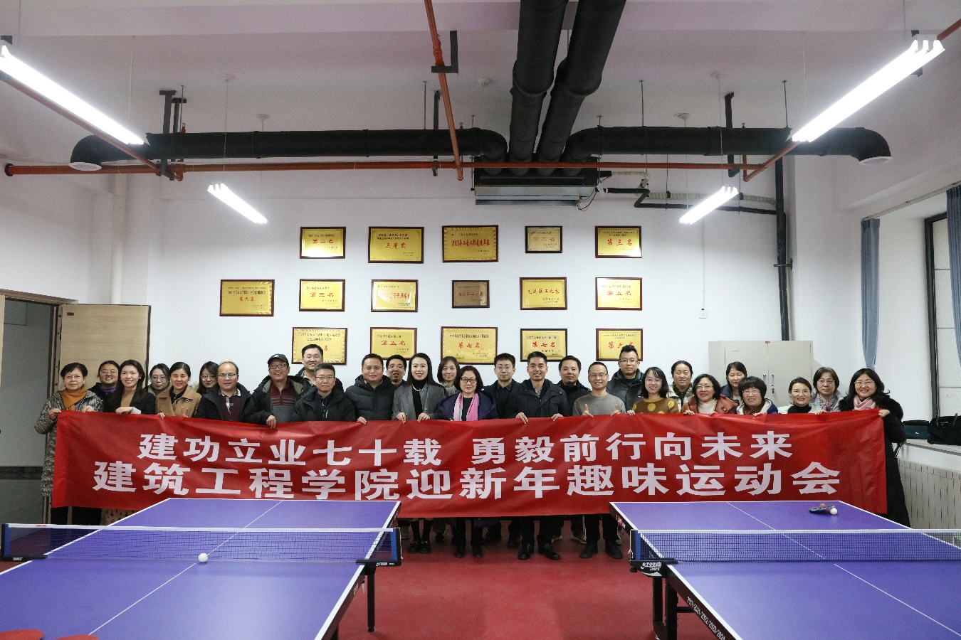 在庆祝建筑工程专业办学70年之际,为丰富教职工精神文化生活,增强欧美AV 广大教职工的向心力和凝聚力,增进联络教职工与校友之间的感情,12月29日下午,欧美AV 在渭水校区乾健综合馆和致远大厦欧美AV 工会活动室举办了主题为“建功立业七十载、勇毅前行向未来”迎新年趣味运动会。欧美AV 党委书记刘明和、党委副书记副院长闫秀萍、副院长胡志平出席并参加,50余名教职工和校友参加了此次活动。