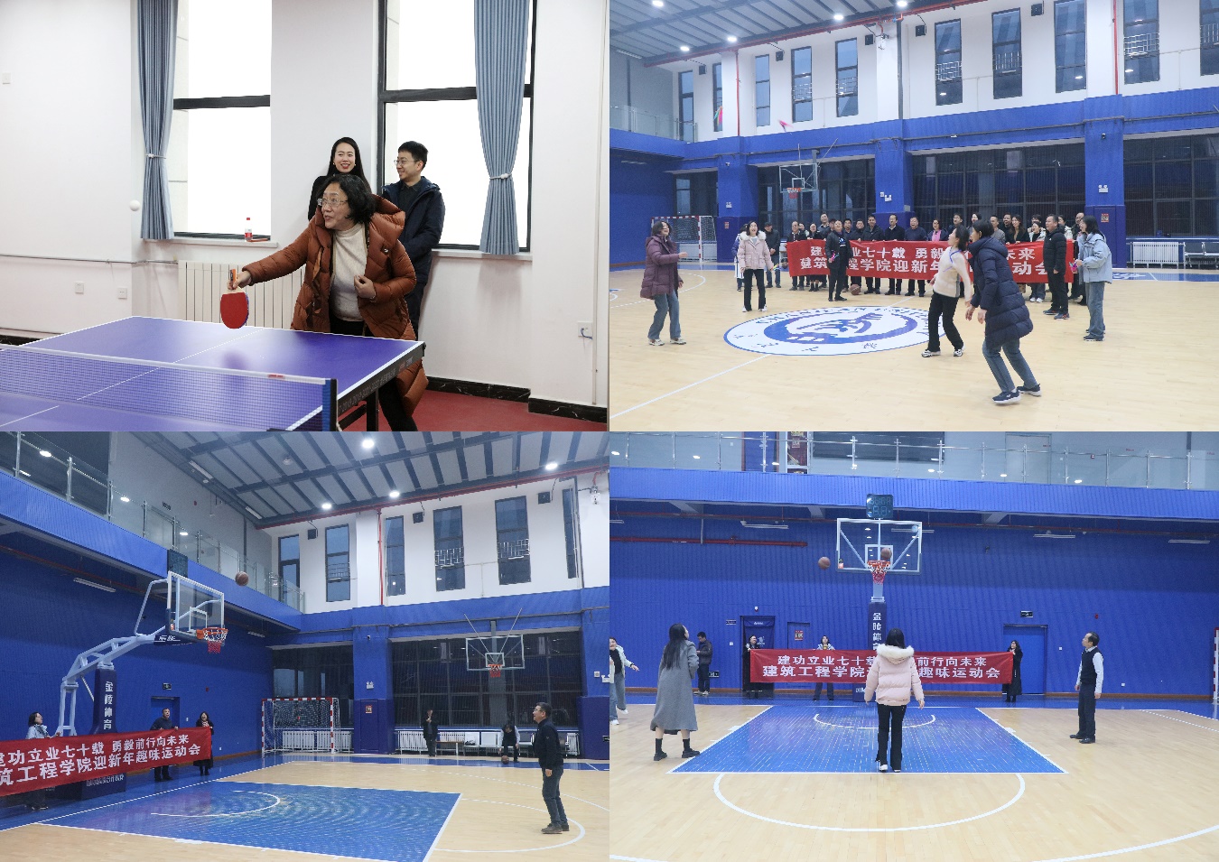 在庆祝建筑工程专业办学70年之际,为丰富教职工精神文化生活,增强欧美AV 广大教职工的向心力和凝聚力,增进联络教职工与校友之间的感情,12月29日下午,欧美AV 在渭水校区乾健综合馆和致远大厦欧美AV 工会活动室举办了主题为“建功立业七十载、勇毅前行向未来”迎新年趣味运动会。欧美AV 党委书记刘明和、党委副书记副院长闫秀萍、副院长胡志平出席并参加,50余名教职工和校友参加了此次活动。