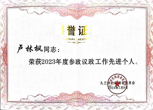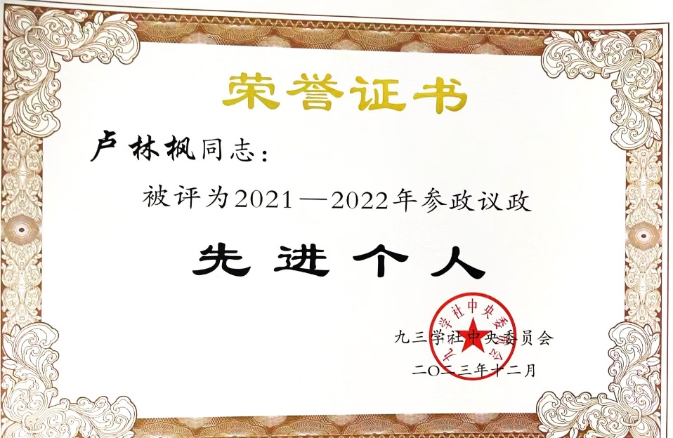 近日,九三中央和九三陕西省委召开会议,表彰2023年度先进集体和先进个人。九三学社社员、欧美AV卢林枫教授荣获2023年度九三学社中央参政议政工作先进个人和2023年度九三学社陕西省委参政议政先进个人。