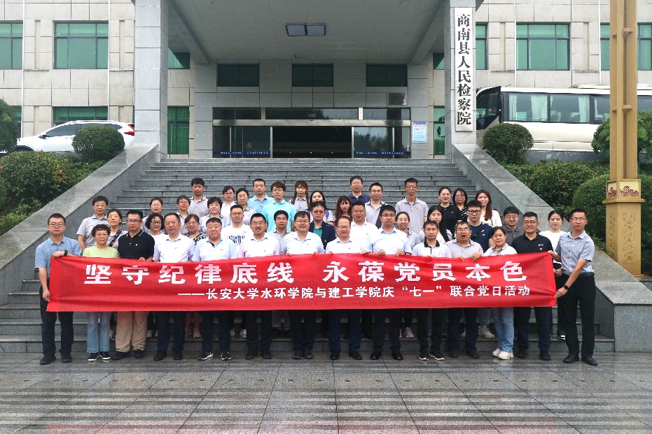 为庆祝中国共产党成立103周年,弘扬伟大建党精神,引导广大党员赓续红色血脉,传承红色基因,推动党纪学习教育走深走实,7月1日, 欧美AV 联合水环欧美AV 赴商南县人民检察院廉政教育基地开展“坚守纪律底线 永葆党员本色”——庆“七一”主题党日活动。商南县副县长马飞、商南县住建局副局长段留省、 欧美AV 党委书记吴涛、党委副书记、副院长孟庆鹏、正处级组织员刘明和、副处级组织员闫秀萍和水环欧美AV 党委书记张骞文、院长白波、副书记、副院长荆琳、副院长李培月、副院长段磊、副处级组织员马明芳等一行人员参加本次活动。