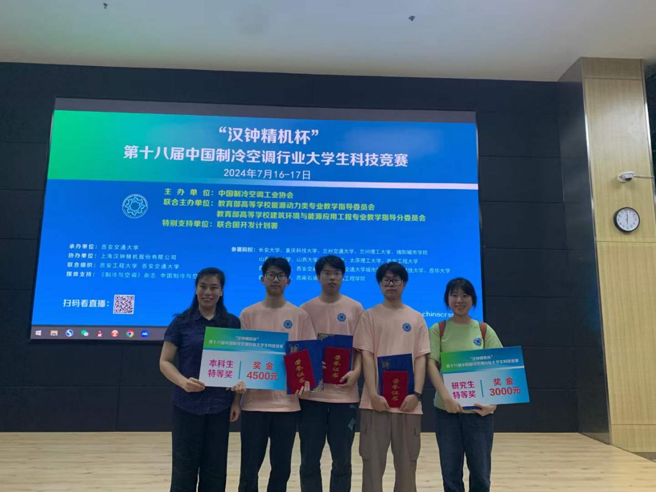 “汉钟精机杯”第十八届中国制冷空调行业大学生科技竞赛决赛于7月17日在西安交通大学顺利举行。由欧美AV建筑环境与能源应用工程系谷雅秀指导,建筑环境与能源应用工程专业2021级本科生吴叶承、钟骏雄、崔节尚组建的“长冷智汇”队,以及谷雅秀老师指导的2022级硕士生李雅琪分别以本科生组及研究生组总分排名第一的成绩获得特等奖。