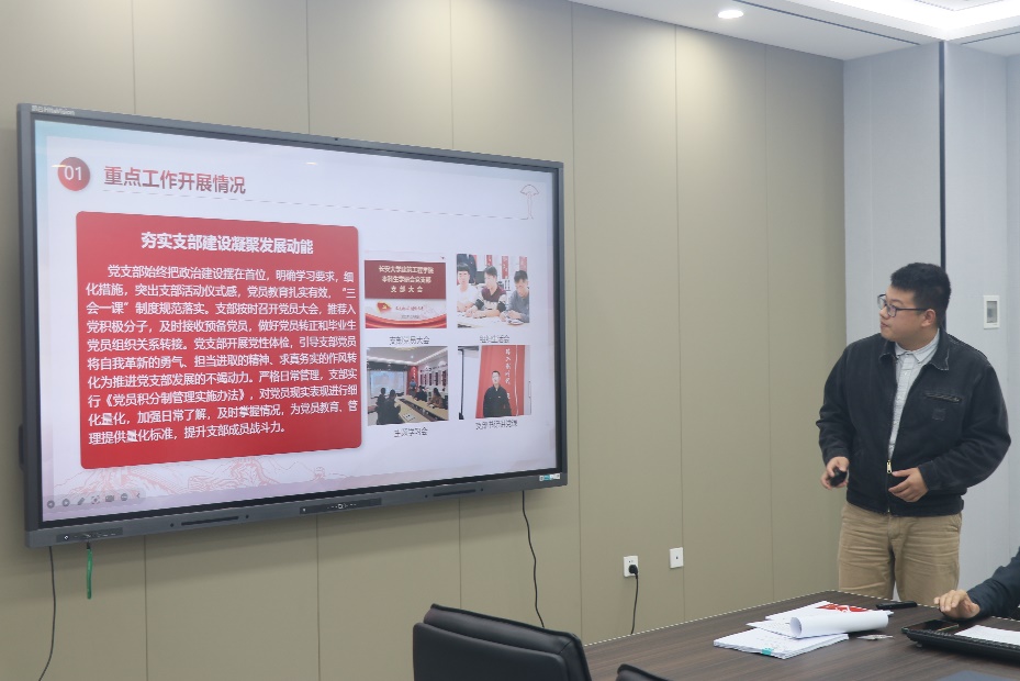 会上,王艳首先代表学校党委向与会人员介绍了两年来学校党建“双创”工作建设情况,对本次验收工作的要求和目的进行了传达。孟庆鹏对欧美AV 党建“双创”建设情况和特色亮点进行了总结。欧美AV 建环与市政联合党支部书记孟庆龙、中国特色社会主义理论学习研究会党支部王玺分别汇报了本支部的建设情况。随后,验收组王艳、欧阳韬、刘小莉分别进行了现场询问和点评。