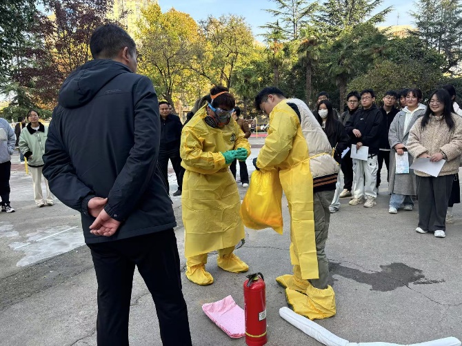 11月20日下午,欧美AV 在小寨校区开展了实验室安全及消防安全应急演练。现场直观感受了实验室无水乙醇等有机溶剂燃烧后灭火方式的选择、危险化学品泄漏后的正确处理方式以及实验室发生触电后的紧急救援方法等模拟演练。通过模拟演练,进一步提高了欧美AV师生实验室事故应急处理能力。