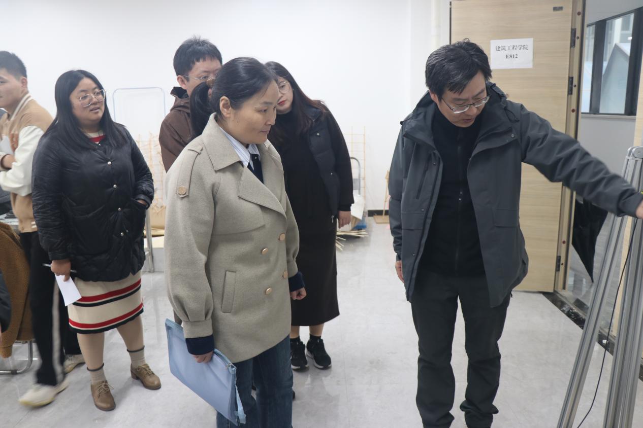 现场考察中,检查组详细了解了“土木工程新技术双创实践基地”的场地、设备等硬件设施环境和学生参与大创训练项目、创新大赛等创新创业项目的开展情况。
