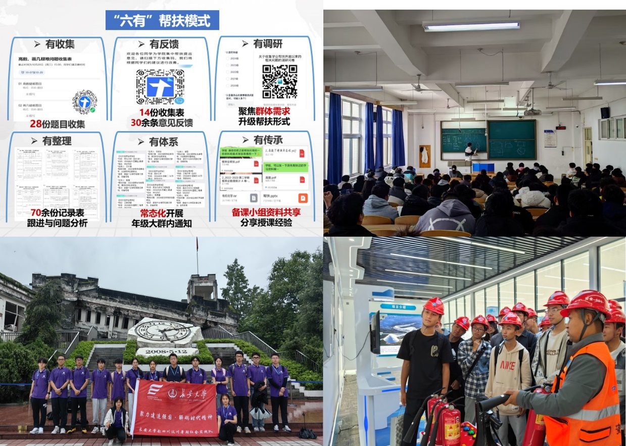 深化集中帮扶,拓宽能力提升辐射面。一是形成每学期补考前、学期中、期末前“三阶段”的集中帮扶模式。以真题讲解、现场答疑、知识点梳理、开设帮扶自习室等方式进行常态化集中帮扶,累计开设71个科目、284个课时。组建备课小组,提升帮扶志愿者的授课质量和效率。课后组建答疑群,坚持“下课不下线,帮扶不断线”。探索形成“六有”帮扶模式:有收集、有反馈、有调研、有整理、有体系、有传承,扎实构建帮扶闭环系统。二是筑牢思想引领阵地。创立“青学青思”线上学习专栏、“榜样的力量”系列推送,构建新媒体宣传矩阵;开设专题读书会,注重学生干部素质提升,帮助学生扣好第一粒扣子;组织每月示范性主题团日活动,联合各方学生骨干力量,鼓励青年走出校园,在实践中推进帮扶骨干素质提升。