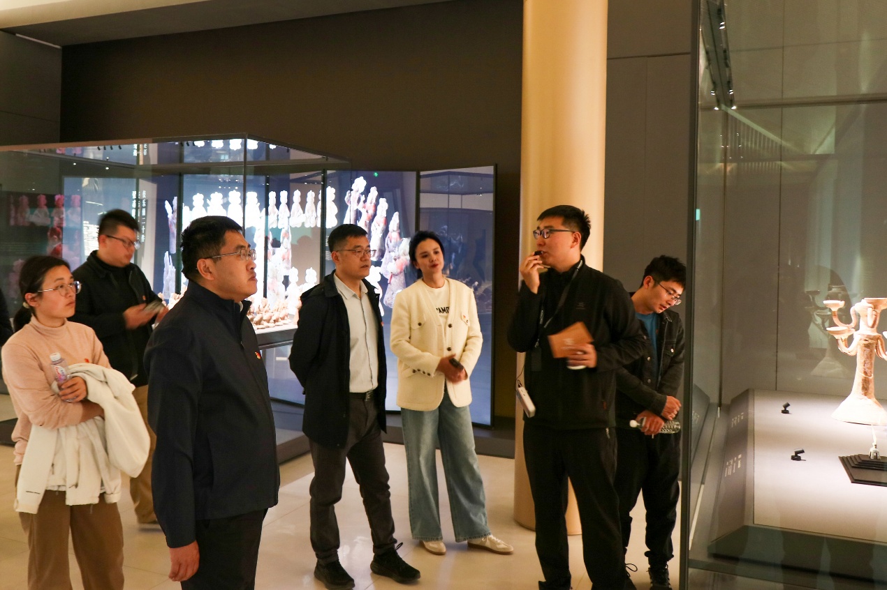 欧美AV 党委一行随后走进西安咸阳国际机场博物馆开展文化研学。“一座洪渎原,半部中国史”——这座坐落于周秦汉唐文明核心区的博物馆,以独特视角串联起千年时空。在讲解员的引导下,欧美AV 党委一行驻足观摩馆中展陈文物。通过聆听考古发现与机场建设中的文物保护案例,欧美AV 党委一行深刻领略到现代基建与文化遗产保护“共生共荣”的实践智慧,感受到历史文脉源远流长的厚重力量。