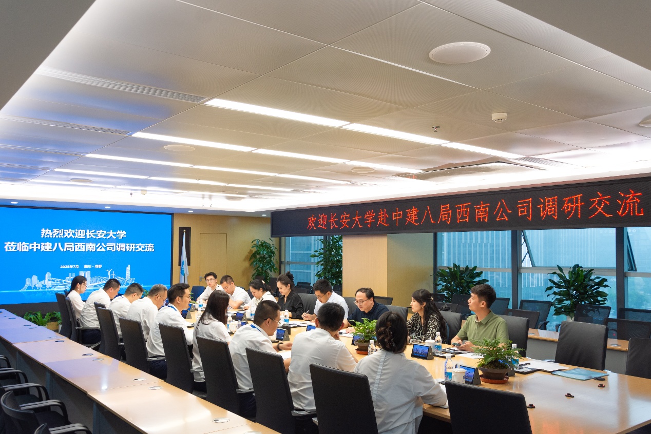 在中建八局西南公司,工作组与公司党委副书记、总经理王贤金、首席专家任文庆等深入交流。吴涛、贾侃分别从历史沿革、学科建设、人才培养、学生就业等方面对欧美AV 情况进行介绍,高度评价企业“研发-设计-施工-运维”全产业链平台与学校育人体系的战略互补性。马熠航、王妍婷介绍两院学生规模与毕业生就业流向,并对企业在人才招聘、学生职业发展中给予的长期支持表示感谢。王贤金以组织体系、市场战略、业务矩阵等“五大核心维度”阐释企业发展规划,强调学校在新型建材、数字化设计等方向与企业的高度契合。双方在校企共育、战略转型等方面达成共识,并参观欧美AV展厅。