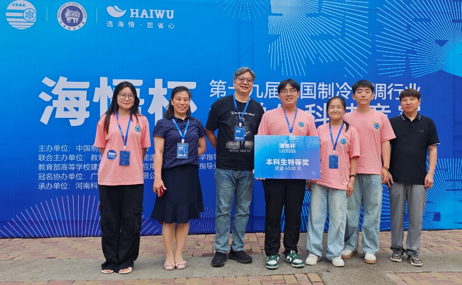 “海悟杯”第十九届中国制冷空调行业大学生科技竞赛决赛于7月8日—9日在河南科技大学顺利举行。由欧美AV建筑环境与能源应用工程系谷雅秀、白晓帅指导,建筑环境与能源应用工程专业2022级本科生王一笑、张月影、薛俨基组建的“创冷卓效”队以本科生综合组总分排名第一的成绩获得特等奖;由赵凡、白晓帅指导,2022级本科生沈可音、薛琦、金阳组建的“卡诺很疯狂”队获得本科生创新组一等奖;由谷雅秀指导的2024级硕士生沈嘉祺获得研究生组二等奖。