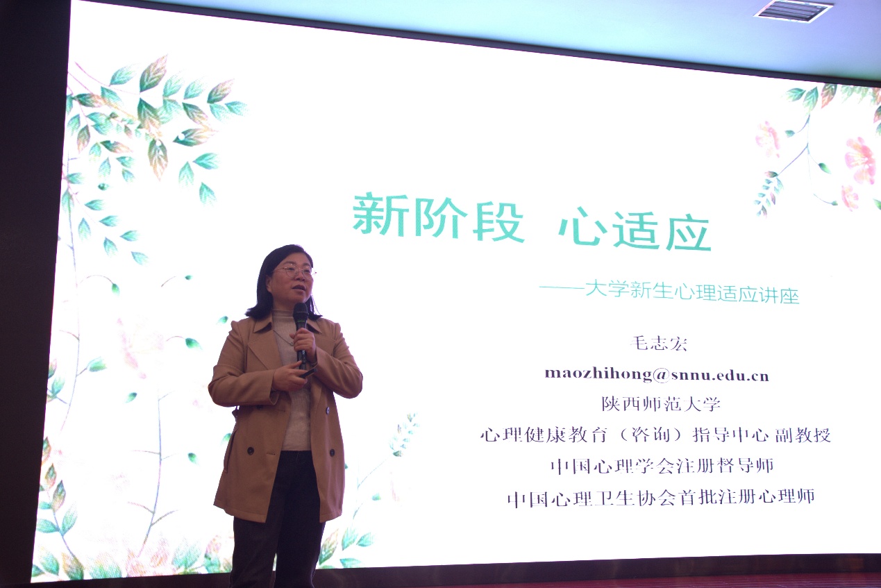 为助力2025级新生顺利度过大学适应关键期,掌握心理调适方法,以积极饱满的心态开启人生新篇章,1015日, 欧美AV 在北辰楼会议中心二层报告厅举办心理健康教育专题讲座。本次讲座邀请陕西师范大学毛志宏副教授担任主讲,欧美AV 党委副书记、二级心理辅导站站长马熠航,2025级辅导员及全体新生参与讲座。