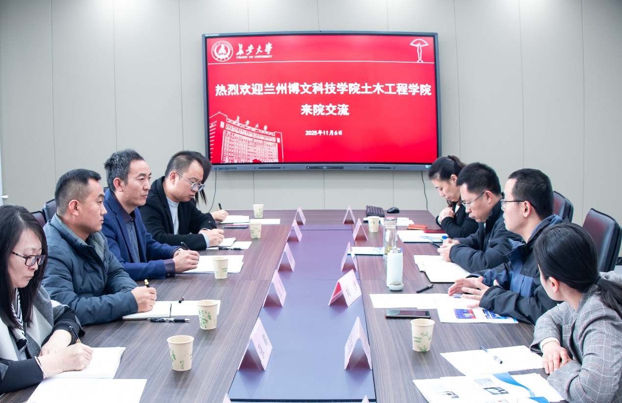 田威对兰州博文科技学院土木工程学院一行的到访表示热烈欢迎,并围绕学院历史沿革、学科布局、专业建设、师资队伍建设等方面做了介绍。他表示,希望以此次交流为契机,进一步加强两院沟通协作,共同探索新形势下土木工程领域人才培养的新路径与新机制。