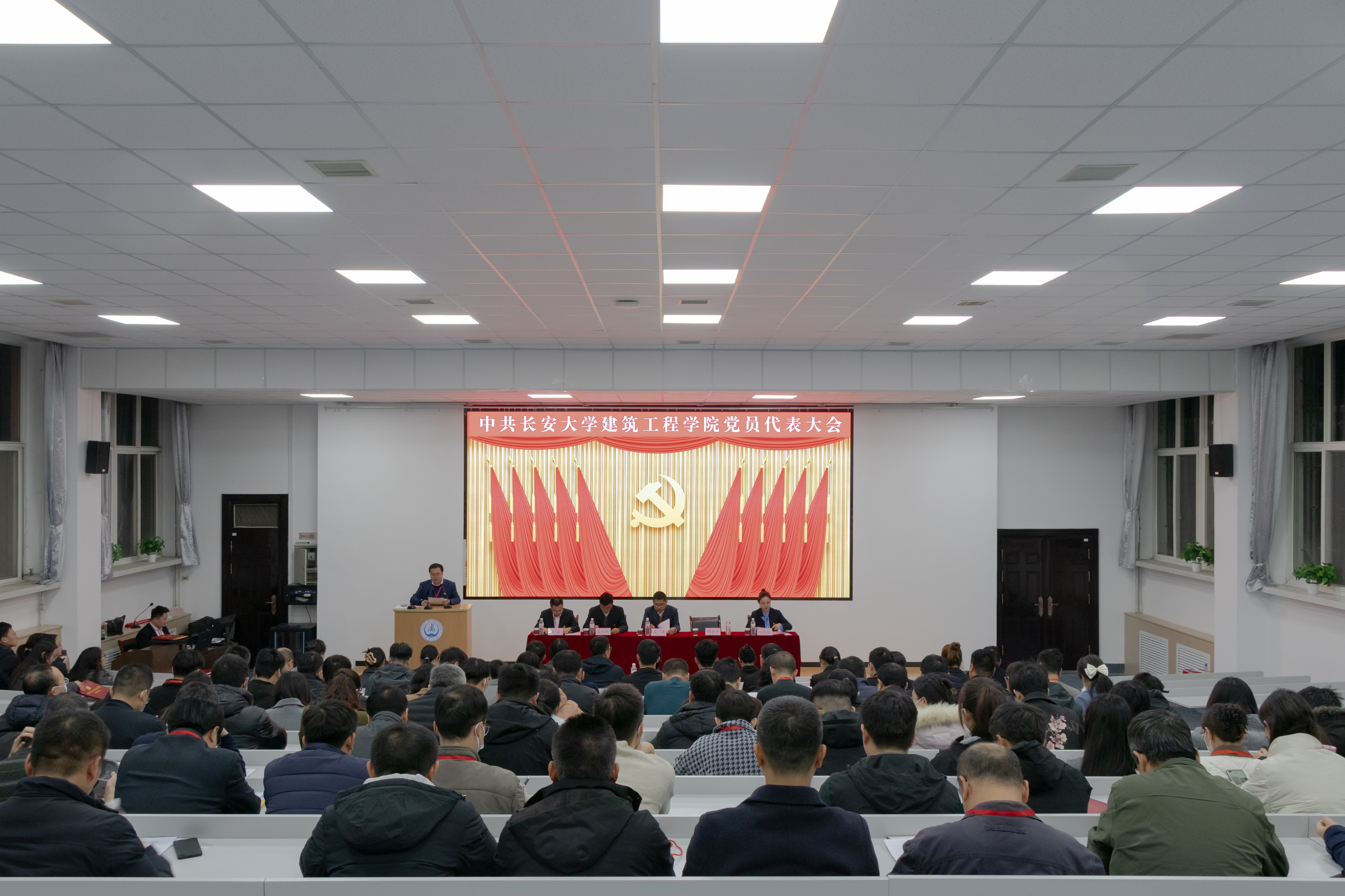 12月3日晚,中国共产党欧美AV 党员代表大会在小寨校区综合楼二楼报告厅隆重召开。本次大会共有正式代表108名,实到代表104名,校党委常委、宣传部部长郗波、巡察办王风珊到会指导,会议由院长邢国华主持。