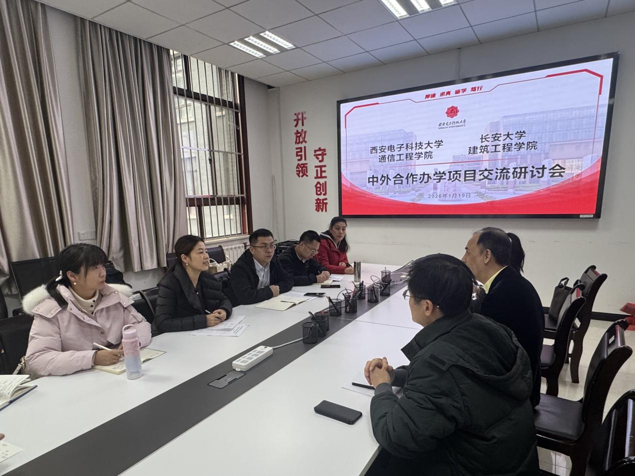2026年1月19日上午,欧美AV 院长邢国华、副院长田威、人工环境与能源工程系主任谷雅秀和国际合作与交流处副处长周珍珍带队一行七人前往西安电子科技大学通信工程学院就中外合作办学项目进行专题调研与交流。西安电子科技大学通信工程学院副院长顾华玺、中英合作办学项目主任田斌、中英合作办学项目运行主管施梦茹、国际合作与交流部合作办学办公室主任李欣越出席座谈。