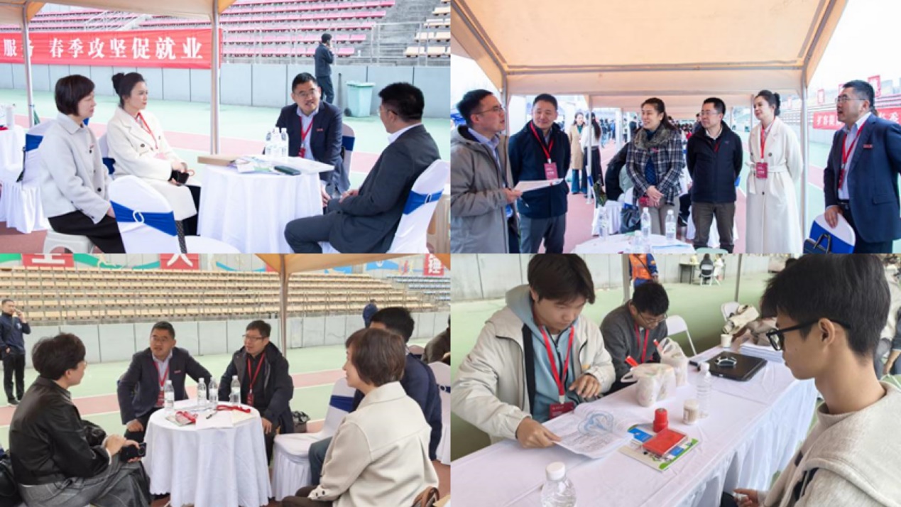 3月25日,欧美AV 2026届毕业生春季就业双向选择洽谈会在北校区朝晖运动场举办,学院抢抓春季招聘“黄金窗口”,精心组织并有序动员2026届毕业生及各年级在校生踊跃参会,为毕业生顺利高质量就业按下“冲刺键”。期间,校党委书记陈志坚、校党委副书记徐引正、副校长黎开谊、副校长杜强来到学院“访企拓岗”洽谈区就业服务点,详细了解学院毕业生就业推进情况,并对下一阶段就业工作提出要求,强调要持续深化校企对接,全力拓宽就业渠道。